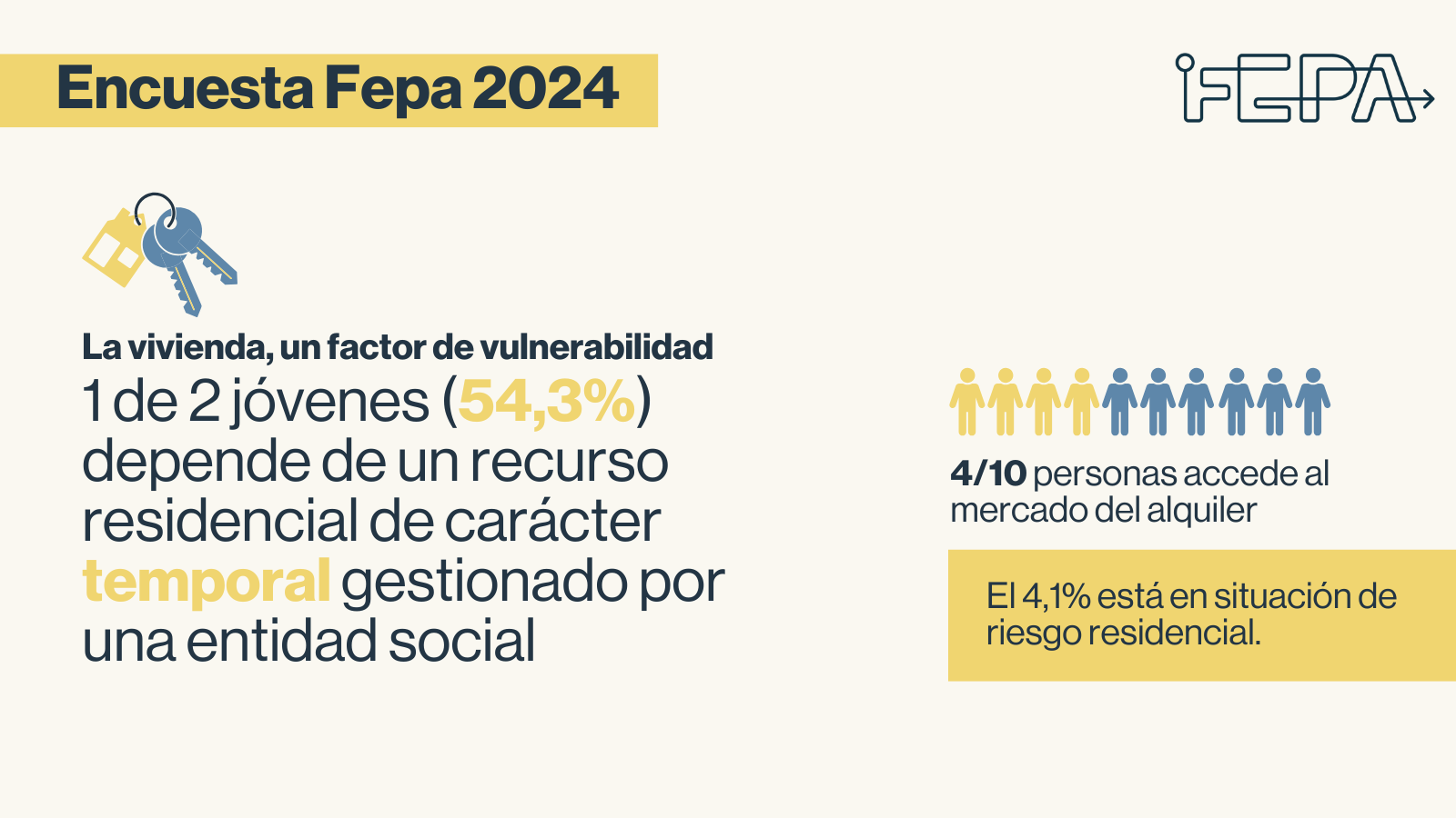 - “Aquestes dades reflecteixen la determinació i l’aspiració de progrés d’aquesta joventut, però també l’obligació de sostenir una emancipació accelerada i sense una xarxa de suport consolidada”, afirma el director de Fepa, Jordi Sàlvia. I adverteix: “És un esforç admirable que no pot amagar una desigualtat de partida que les administracions han de corregir”.
